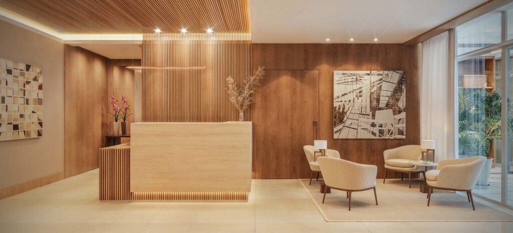 No Ibiúna Vista Botafogo, cada ambiente foi moldado para envolver seus sentidos: a luz suave refletindo nos acabamentos premium, o toque acolhedor das texturas nobres e a vista inesquecível para o Cristo que transforma qualquer manhã em um ritual de contemplação.